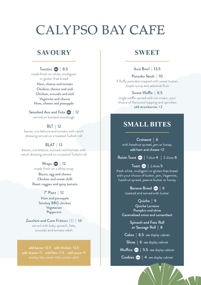 Calypso Bay Café Menu